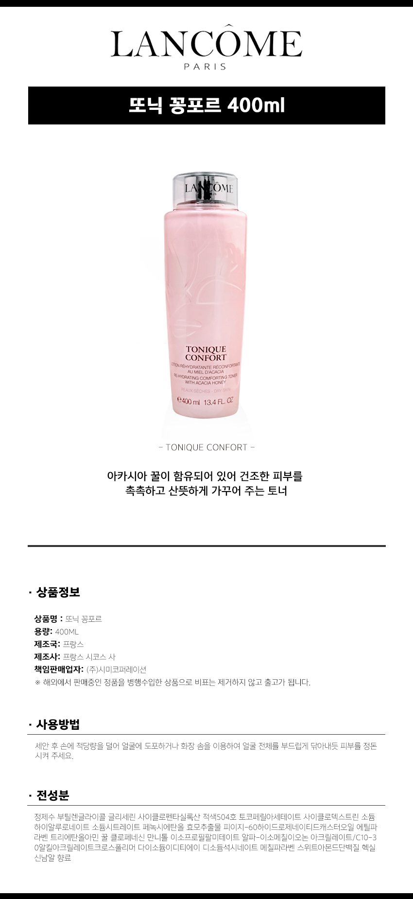 | 기능성 화장품의 경우 화장품법에 따른 식품의약품안전처 심사 필 유무/기능성내용 | 기능성 화장품의 경우 화장품법에 따른 식품의약품안전처 심사 필 유무:대상아님 / 기능성내용:[상세설명참조] | ||